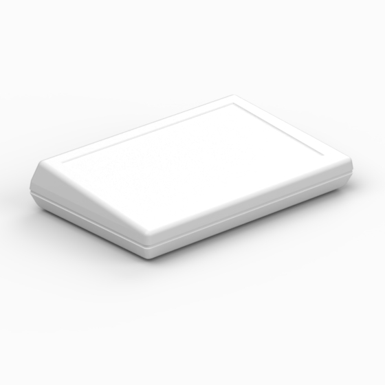 Boîtier en ABS avec partie supérieure inclinée. Les parties inférieure et supérieure sont munies de guides et de plots pour la fixation d’un circuit imprimé. Les modèles «PRO96» et «PRO96K» présentent la partie supérieure avec un décrochement de 1 mm pour y placer un clavier à membrane ou un panneau en aluminium. Le modèle «PRO96K» est fourni avec jeu de joint IP65. Surface opaque. Montage par quatre vis. Livrable sur demande, panneau en aluminium (Mod. AP96).