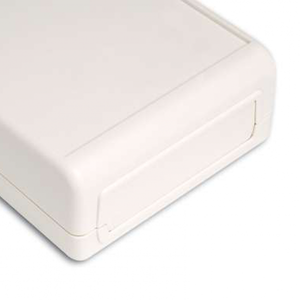 Contenitori in policarbonato. Chiusura con quattro viti in acciaio. La parte superiore è dotata di superficie ribassata per l’eventuale alloggiamento di una tastiera a membrana. Dieci modelli a disposizione. La versione con “W” presenta due aperture frontali con pannelli in policarbonato. I modelli con “-B” sono dotati di vano per alloggiamento quattro batterie stilo da 1,5V. I modelli contrassegnati con “K” sono dotati di guarnizione per IP65.