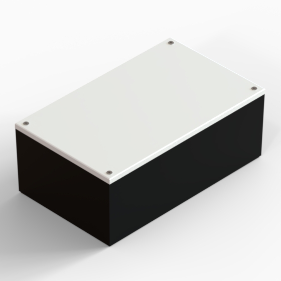 Contenitori in ABS con spigoli vivi e pareti con superfici lucide all’interno delle quali sono presenti guide per PCB. La serie “CP” ha un pannello di chiusura in ABS sempre in colore grigio chiaro. Chiusura a quattro viti.